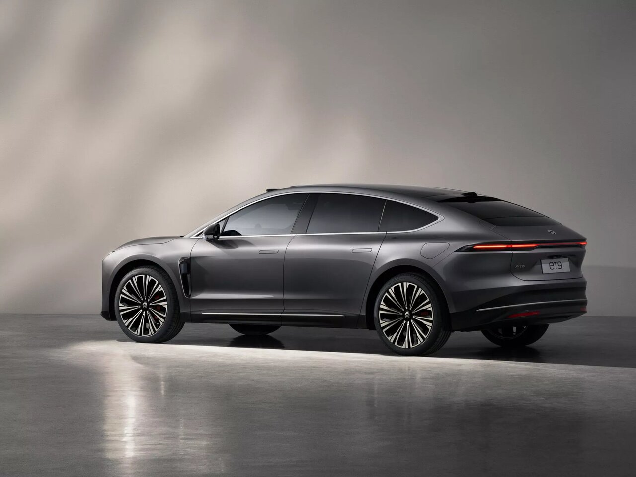 ET۹ دارای خط سقف فست بک و کشیده بوده و امضای طراحی نیو را همچنان حفظ میکند. امضای طراحی آن شامل قسمت جلوی تیز با چراغهای جلوی باریک و چراغهای عقب متصل است. نمای عقب آن شبیه به پورشه تایکان به نظر میرسد. با این حال، برخلاف برادر کوچکتر خود، یعنی ET۵، ظاهر اسپرت کمتری دارد.