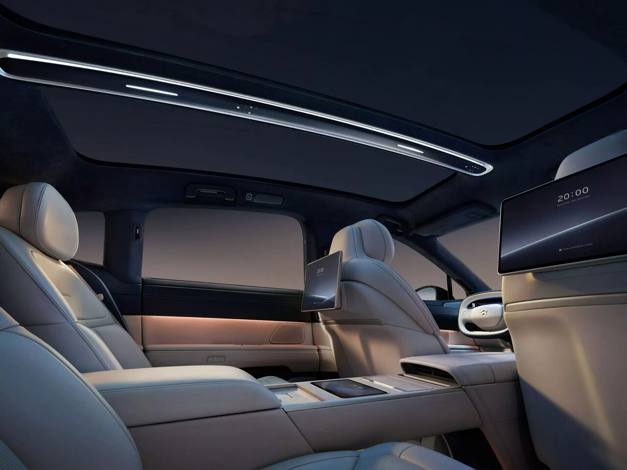 Nio هنوز طراحی داشبورد را به طور کامل فاش نکرده است، اما جزئیات زیادی در مورد قسمت سرنشینان عقب به اشتراک گذاشته است. واضح است که اولویتهای این شرکت به سمت افرادی است که روی صندلی عقب نشستهاند، مانند پهن کردن فرش قرمز برای مسافران خطوط هوایی درجه یک. صندلیهای عقب ET۹ دارای زاویه تنظیم پشتی تا ۴۵ درجه، عرض بالشتک صندلی ۵۸۲ میلیمتری (۲۲.۹ اینچ) و ۱۱ تنظیم با یک کلیک هستند. بهعلاوه، این خودرو دارای ۷ آفتابگیر برقی است که با فشار دادن یک دکمه فعال میشوند.
